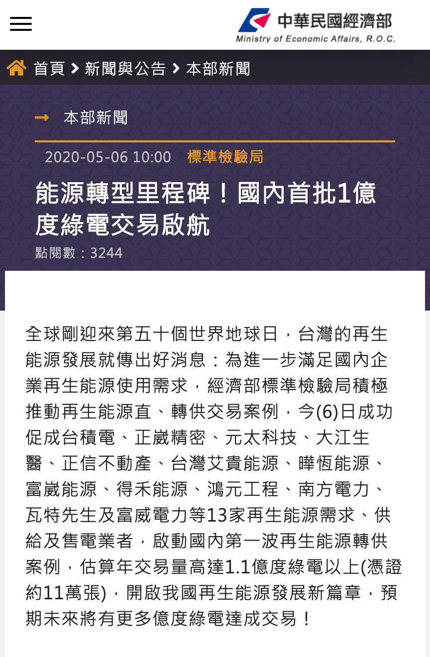 2019年4月《再生能源發展條例》修正,契約容量5,000瓩(KW)以上之用電大戶須付【10%再生能源義務】: