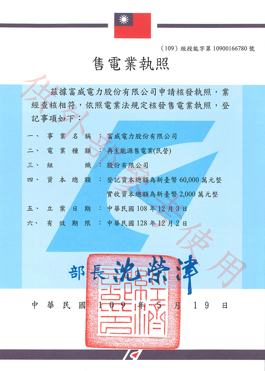 富威電力為森崴能源子公司,為台灣首批取得綠電售電執照之民間企業,致力打造【綠電大平台】,提供最值得信賴而便捷的綠電交易與再生能源憑證買賣服務、最專業的ESCO節能技術與儲能裝置系統,為企業提供全方位的綠能服務、接軌國際綠色供應鏈的全新時代。