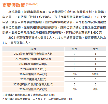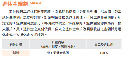 森崴能源以幸福企業為宗旨,員工皆為夥伴而非勞工為理念,打造友善的工作環境、提供優於法令制度的員工福利,重視員工關懷及健康,致力於留任優秀員工,改善福利制度,且定期檢視自身與外界的標準進而達到與時俱進福利制度。